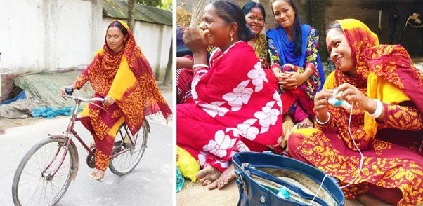 Her house is located 3 km away from production centre and so she commutes to the centre after her school every day by her bicycle. When she works at school and our production unit, her mother-in-law takes care of her child. The most interesting part that she likes at Hathay Bunano is she can meet with all the other artisans at a meeting place, and can chat and feel the community spirit. Her work makes a huge lifelong impact on her life and helps her to inspire and empower the young girls she teaches at the primary school. It’s very unusual in Bangladesh for a woman to ride a bicycle and have so much independence but Kakoli is supported by her family because of the income she is able to bring to the family.